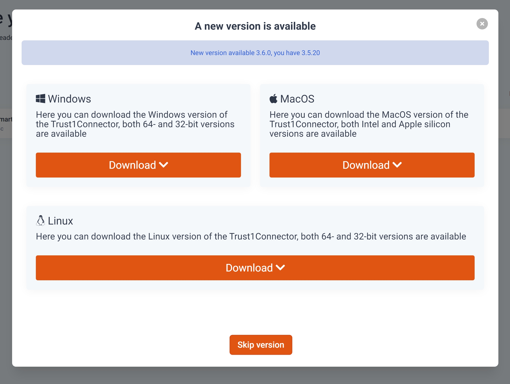 to determine a pop-up for example, so that the user can download and use this Trust1Connector.