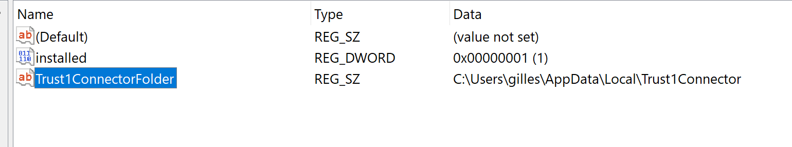 HKEY_CURRENT_USER\SOFTWARE\Trust1Team\Trust1Connector